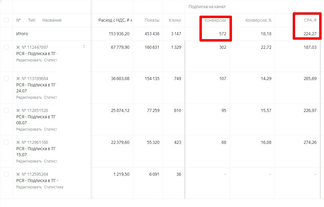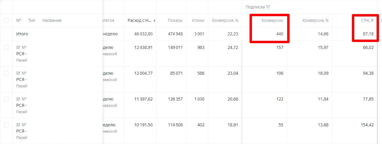 Кампании обучаются именно на подписку в ТГ, а не просто на тех кто кликнул на лендинге кнопку "Перейти в телеграм" (после чего половина кликнувших тупо пропадает).